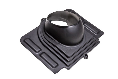 Элемент проходной Vilpe Pelti - проходной элемент для монтажа на металлочерепице труб и вентиляторов диаметром 110 -160 мм и антенного ворота. Герметичность монтажа обеспечивается резиновым уплотнителем, легко формуемым по профилю металлочерепицы благодаря слою алюминия на фланце уплотнителя.